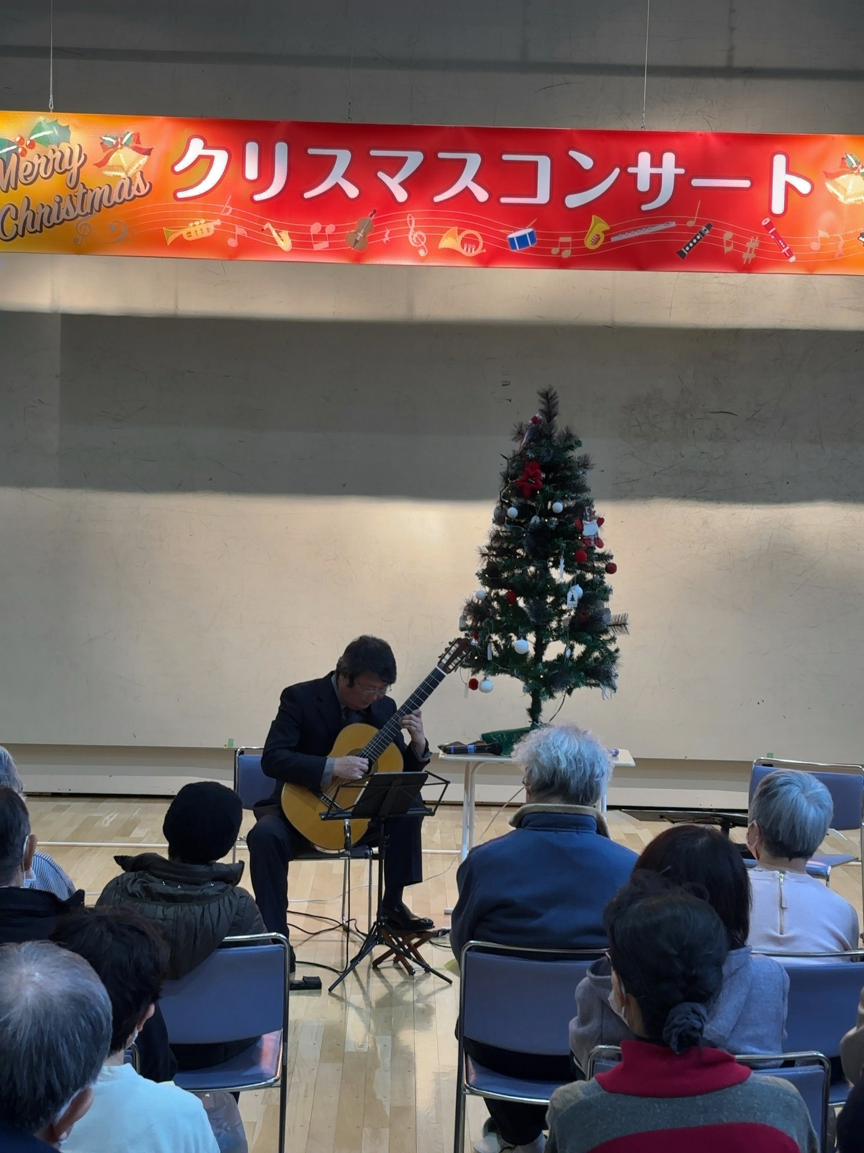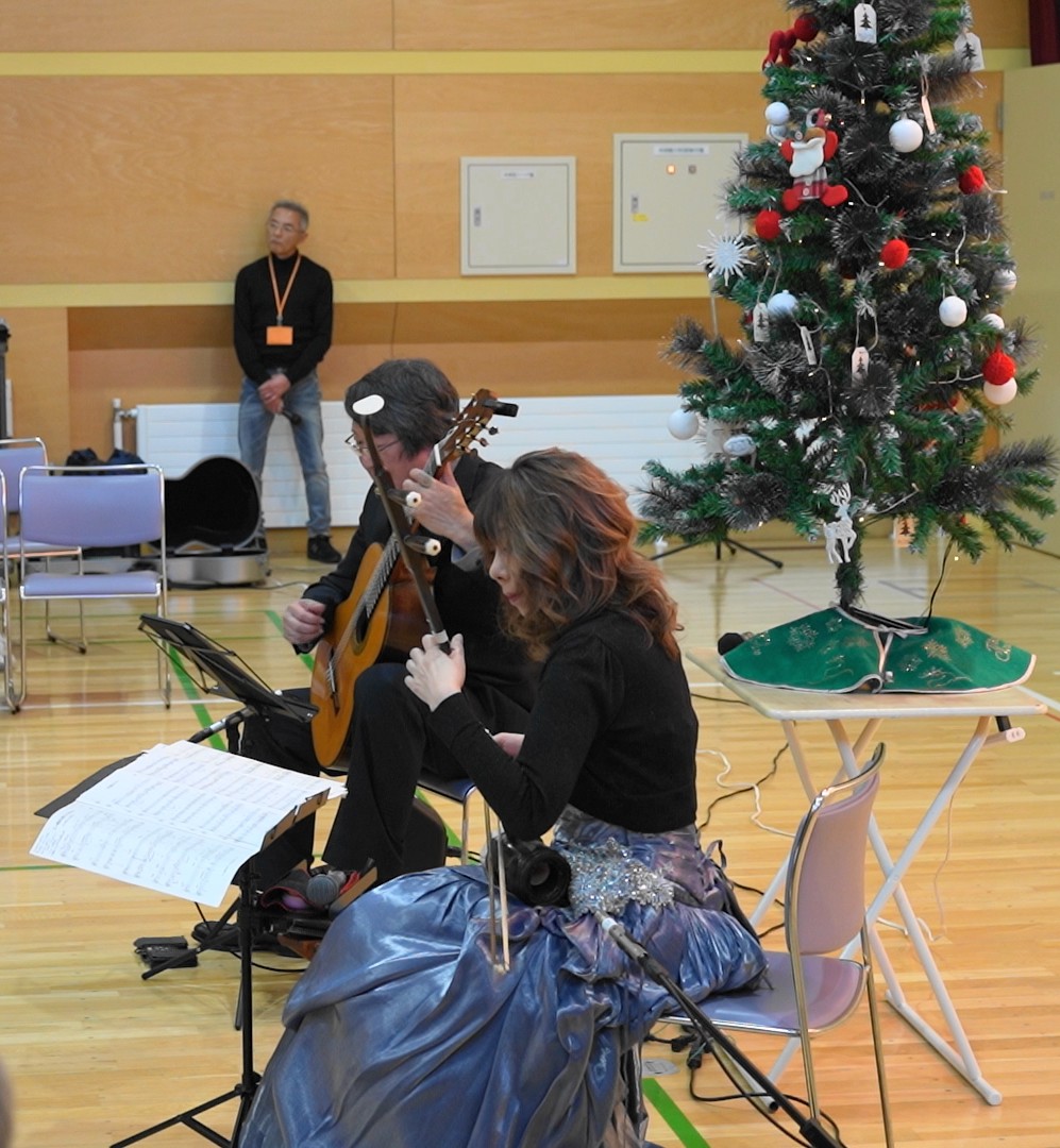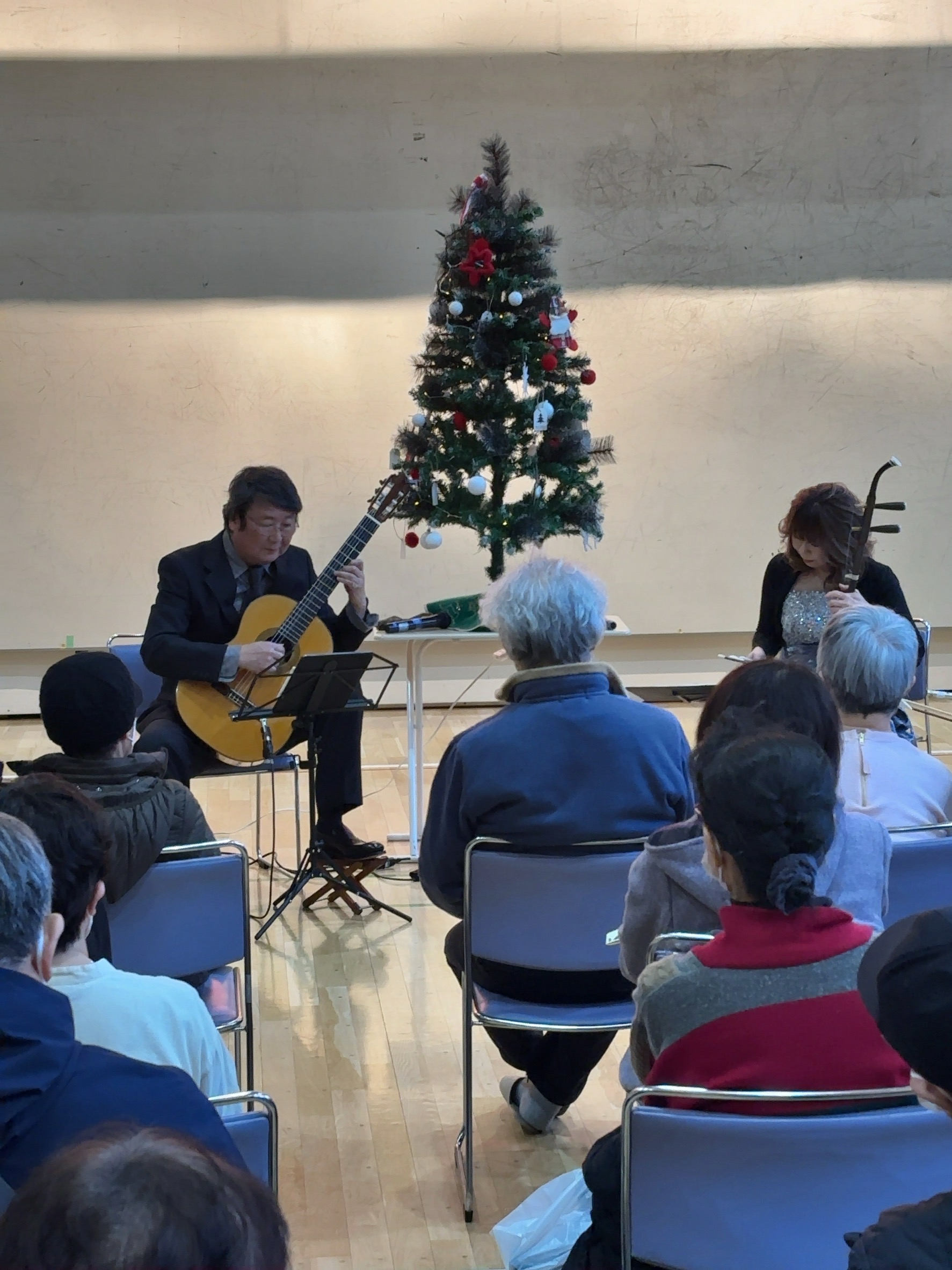 二胡曲、クリスマスソングメドレー他12曲を演奏。アンコールは「川の流れのように」です。美空ひばりさんの曲はどこの会場でも人気です。